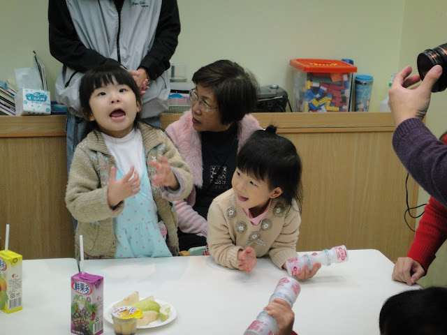 吃完晚餐,看到雙胞胎同學在玩養樂多瓶,波波跑去問,可不可以給我玩?